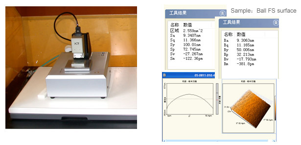 Surface quality of roughness is an important characteristic of balls. AFM can get micro-surface 3D character and Ra/Sa value. It’s precision 0.1nm.